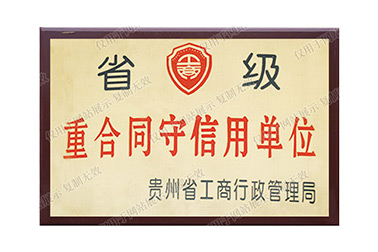 公司获贵州省工商行政管理局省级重合同守信用单位